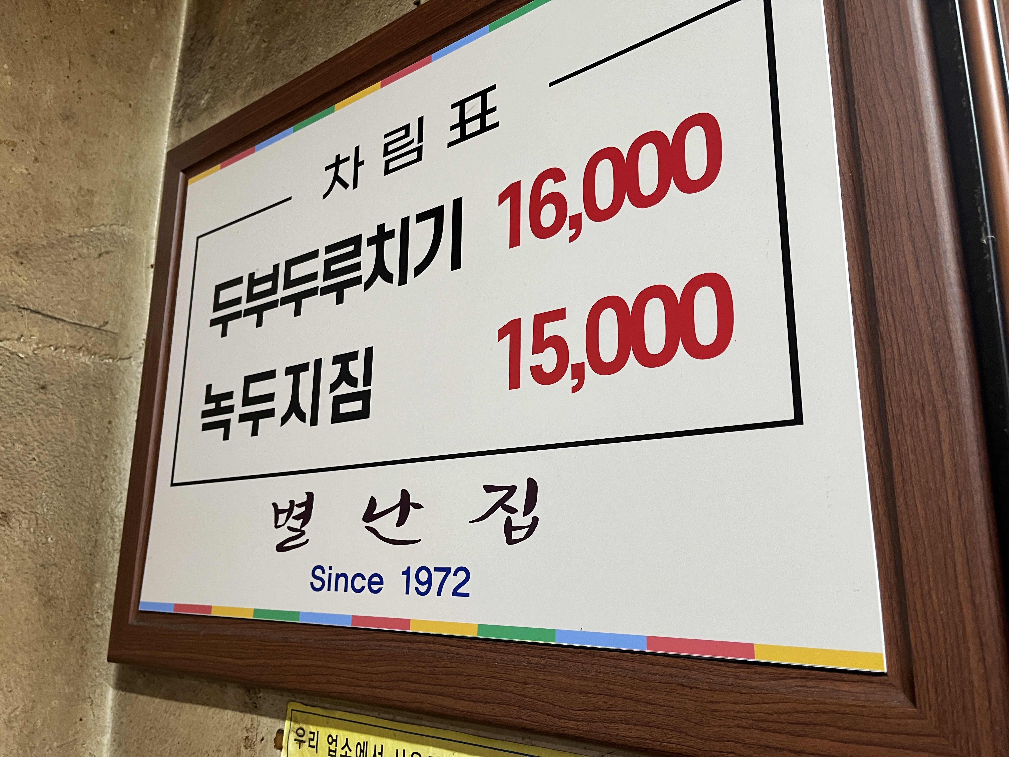 두부 두루치기와 녹두지짐이 2가지만 파는집.